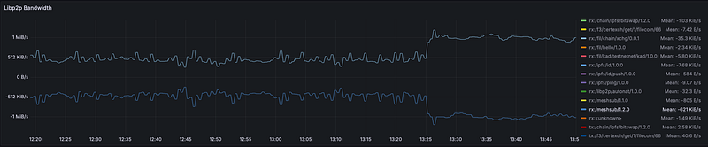 The Bootstrap is expected to take approximately 1 hour and 30 minutes, and the bandwidth usage during this period is estimated to be ≈500KiB Up and Down. After the Bootstrap phase has completed, and we are entering the steady state of F3 finalizing the chain, you can expect the bandwidth usage to be around ≈1 MiB Up and Down.