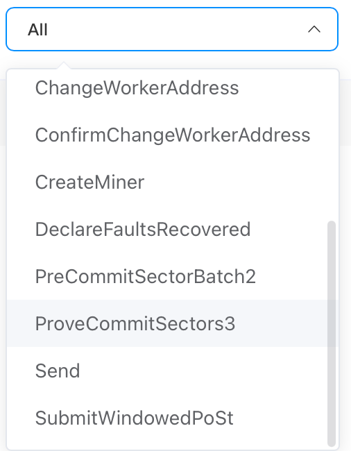 2. Once you’re on your MinerID page, scroll down to the “Message List” section. In the drop-down menu on the right side, select to filter by ProveCommitSectors3 messages: